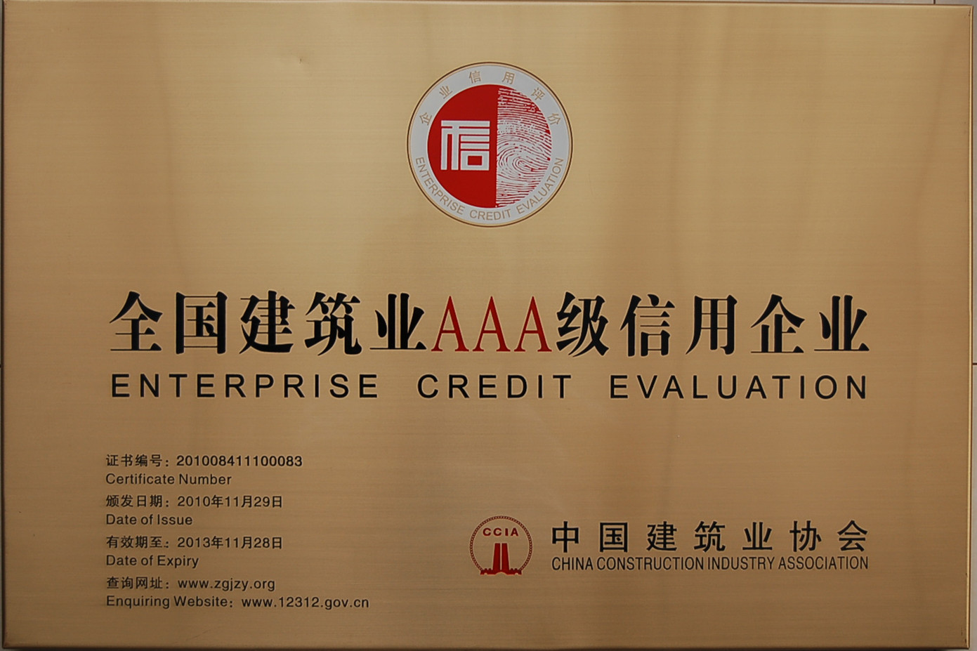 誠為美,信為德。企業(yè)連續(xù)五屆蟬聯(lián)陜西省“守合同、重信用”企業(yè),被中國建筑業(yè)協(xié)會評定為“全國建筑業(yè)AAA級信用資質(zhì)企業(yè)”,多次被銀行授予AA級授信企業(yè),被陜西省稅務(wù)局評定為A級納稅信用企業(yè)。